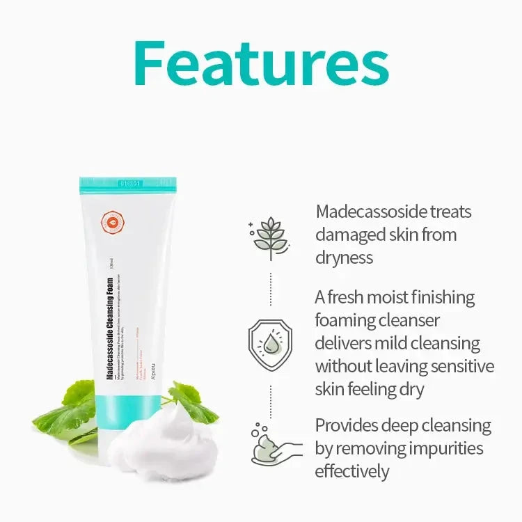 Terapeitiskās putas priekš mazgāšanas Apieu Madecassoside Cleansing Foam problemātiskai ādai ar madecassosīdu. Mīkstās putas maigi attīra ādu no dažādiem netīrumiem un kosmētikas atlikumiem, nomierina, mazina apsārtumu un paātrina iekaisumu dzīšanu. Instruments ir labi piemērots kombinētai un taukainai ādai, tas normalizē skābju-bāzes līdzsvaru un regulē pārmērīgu sebuma veidošanos.