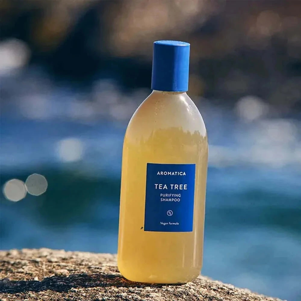AROMATICA Tea Tree Purifying Shampoo – bezsulfātu šampūns ar tējas koku, kurš lieliski piemērots taukainai galvas ādai, rūpīgi attīra matus un galvas ādu no liekā sebuma, blaugznām un netīrumiem, palīdz matu cirtām ilgāk saglabāt svaigumu un tīrību, kā arī nostiprina un atjauno matu folikulus.