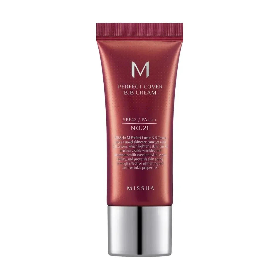 Missha M Perfect Cover BB Cream SPF 42 PA+++ ir daudzfunkcionāls BB krēms, kas ideāli piemērots perfekta grima izveidei ar papildu saules aizsardzību. Pateicoties SPF 42 PA+++, šis krēms ne tikai efektīvi aizsargā ādu no ultravioletajiem stariem, bet arī novērš priekšlaicīgu novecošanos un pigmentāciju. Formulā, kas bagātināta ar hialuronskābi un E vitamīnu, nodrošināta dziļa mitrināšana un barošana, uzturot ādu veselīgu un starojošu visas dienas garumā. Šis krēms arī lieliski noslēpj apsārtumus, plankumus un citas nepilnības, nodrošinot vienmērīgu un dabisku pārklājumu. Piemērots visiem ādas tipiem, ieskaitot jutīgu ādu.