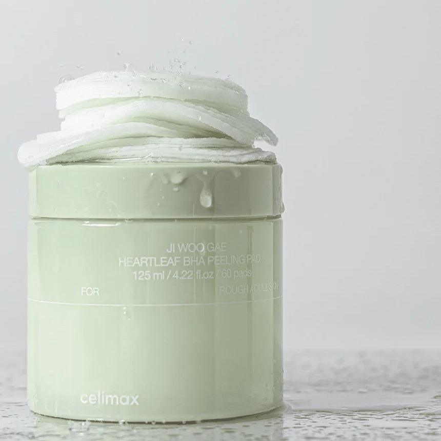 Pīlinga spilventiņi Celimax Ji Woo Gae Heartleaf BHA Peeling Pad lieliski attīra, novērš taukainu spīdumu, cīnās ar iekaisumu un melnajiem punktiņiem, kā arī atsvaidzina un tonizē.