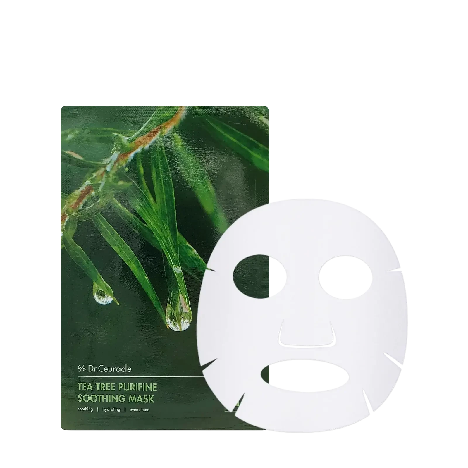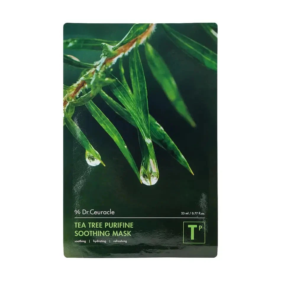 Auduma maska sejai, kuras pamatā ir tējas koka un ginko biloba ekstrakts Dr.Ceuracle Tea Tree Purifine Soothing Mask, palīdz nomierināt problemātisku ādu, mazina iekaisumu un apsārtumu, kurus izraisījuši tādi faktori, kā, piemēram, stress, kairinājums un negatīvā ārējā vide. Palīdz mazināt ādas taukošanos, sašaurina poras, vienlaicīgi mitrinot un aizsargājot ādu no dehidrātācijas.