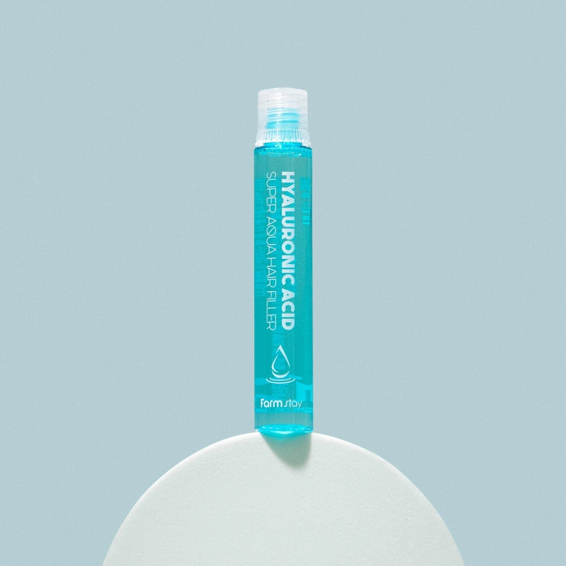 Farmstay Hyaluronic Acid Super Aqua Hair Filler — intensīvs līdzeklis ar hialuronskābi, kas spēcina, mitrina un atjauno bojātos matus visā to garumā.