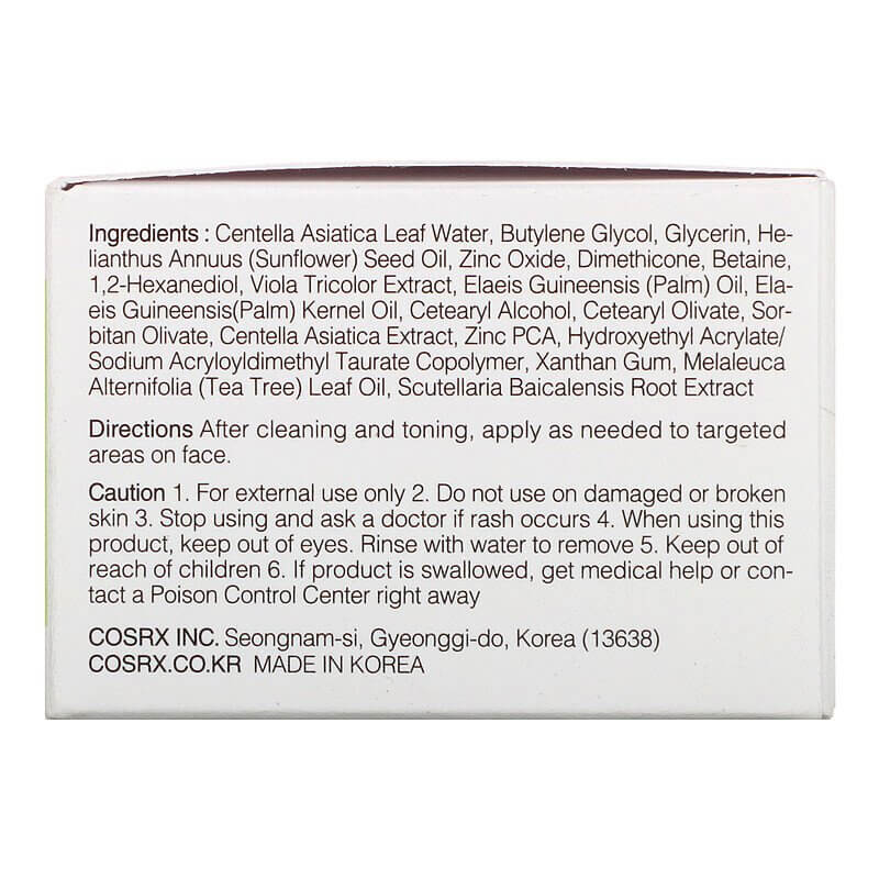 Galvenās sastāvdaļas krēma COSRX Centella Blemish Cream: