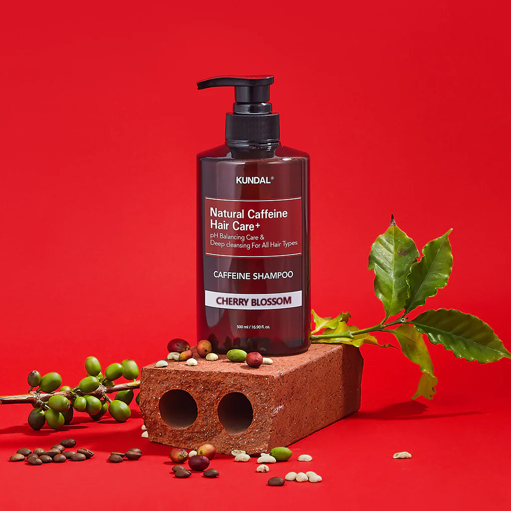 KUNDAL Caffeine Shampoo Cherry Blossom paredzēts saudzīgai, bet vienlaikus arī dziļai galvas ādas un jebkura veida matu kopšanai. Kofeīns veicina matu augšanu, nostiprina matu saknes un palīdz novērst matu izkrišanu. Dabīgie augu ekstrakti regulē sebuma izdalīšanos, kā arī saglabā galvas ādu svaigu un piešķir tai komforta sajūtu. Vieglais ķiršu ziedu aromāts piešķir matiem patīkamu ziedu aromātu, tādējādi padarot matu kopšanu vēl patīkamāku.