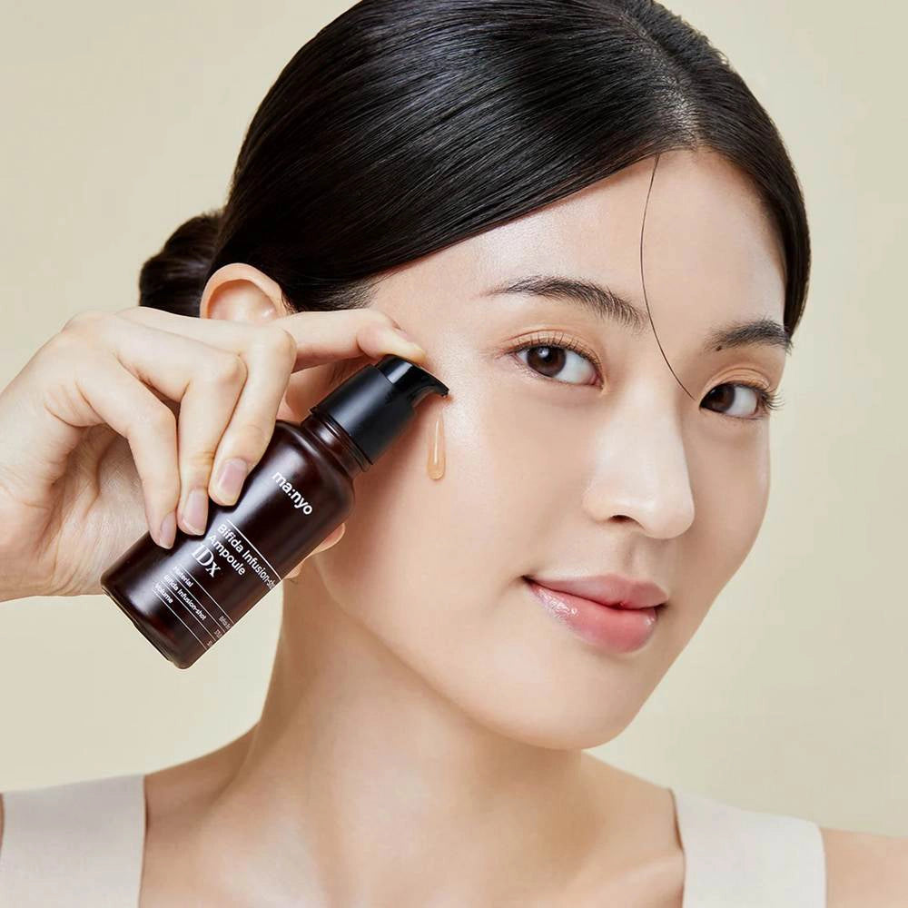 - Pēc attīrīšanas un tonizēšanas uzklājiet 2–3 pilienus Manyo Bifida Infusion-shot Ampoule 1Dx uz sejas.