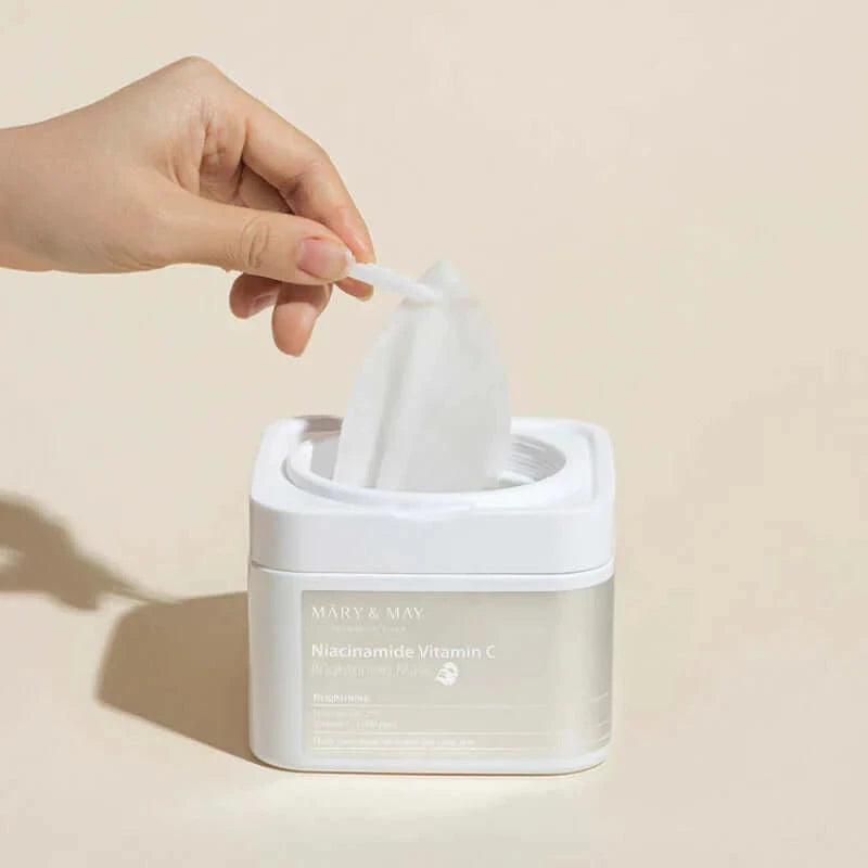 Balinošo masku komplekts ar niacinamīdu un C vitamīnu Mary&May Niacinamide Vitamin C Brightening Mask lieliski piemērots ikdienas ādas mitrināšanai un kopšanai, kā arī tas padara vienmērīgāku sejas ādas toni. Maskas ir bagātīgi piesūcinātas ar esenci, kas izbalina hiperpigmentāciju, padara apsārtumu mazāk pamanāmu, kā arī mazina fotonovecošanās rezultātā radītās sekas. Nekairina jutīgu ādu, neveido lipīgu plēvīti. Satur 2% niacinamīdu, C vitamīnu, arginīnu, hialuronskābi un alantoīnu. Komplekta sastāvā ir iekļautas ekoloģiskas vielas, kā arī komplektā iekļautās maskas nesatur parabēnus, sintētiskās krāsvielas un minerāleļļas (EWG Green).