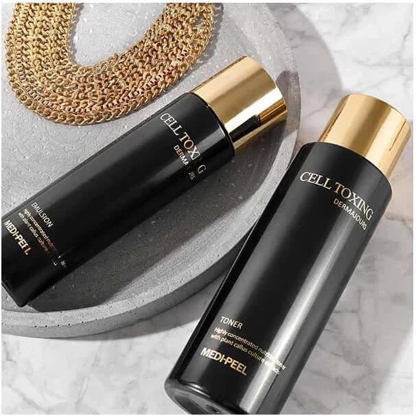 Atjaunojošais toniks ar cilmes šūnām Medi-Peel Cell Toxing Dermajours Toner nodrošina intensīvu pretnovecošanās iedarbību. Mitrina un baro šūnas, izlīdzina mikroreljefu, mazina ādas novecošanos un piešķir tai veselīgu mirdzumu. Toniks cīnās ar ādas novecošanās pazīmēm, veicina ātrāku ādas atjaunošanos. Atjauno un aizkavē ādas novecošanās procesus, iedarbojoties uz problēmzonām: