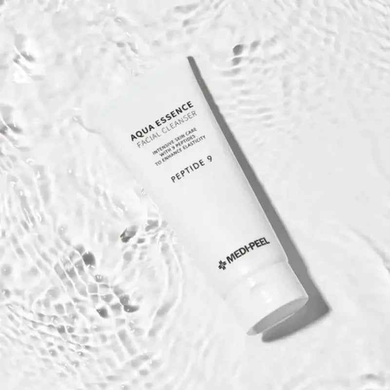Mitrinošās putiņas sejas mazgāšanai Medi-Peel Peptide 9 Aqua Essence Facial Cleanser bagātinātas ar peptīdiem aktīvai pretnovecošanās kopšanai. Tās efektīvi noņem netīrumus, attīra poras un uzlabo ādas izskatu, padarot to tvirtāku un gludāku. Līdzeklis novērš krunciņas, uzlabo ādas elastību un aizsargā no ārējās vides negatīvās ietekmes. Produkta sastāvā iekļauts 9 peptīdu komplekss, astaksantīns, volufilīns, septiņu veidu hialuronskābe, glutations, koenzīms Q10, kā arī hidrolizēts kolagēns un elastīns, kas nodrošina kompleksu ādas mitrināšanu, barošanu un atjaunošanos.