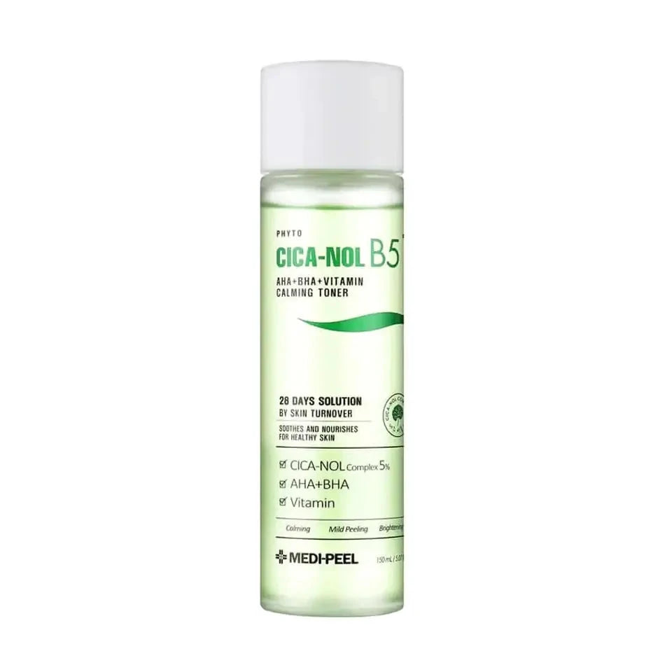 Medi-Peel Phyto Cica-Nol B5 AHA BHA Vitamin Calming Toner — atjaunojošs toniks iekaisuma novēršanai ar daudzfunkcionālām sastāvdaļām, kurš cīnās ar akni un kairinājumiem, kā arī novērš jaunu nepilnību veidošanos uz ādas.