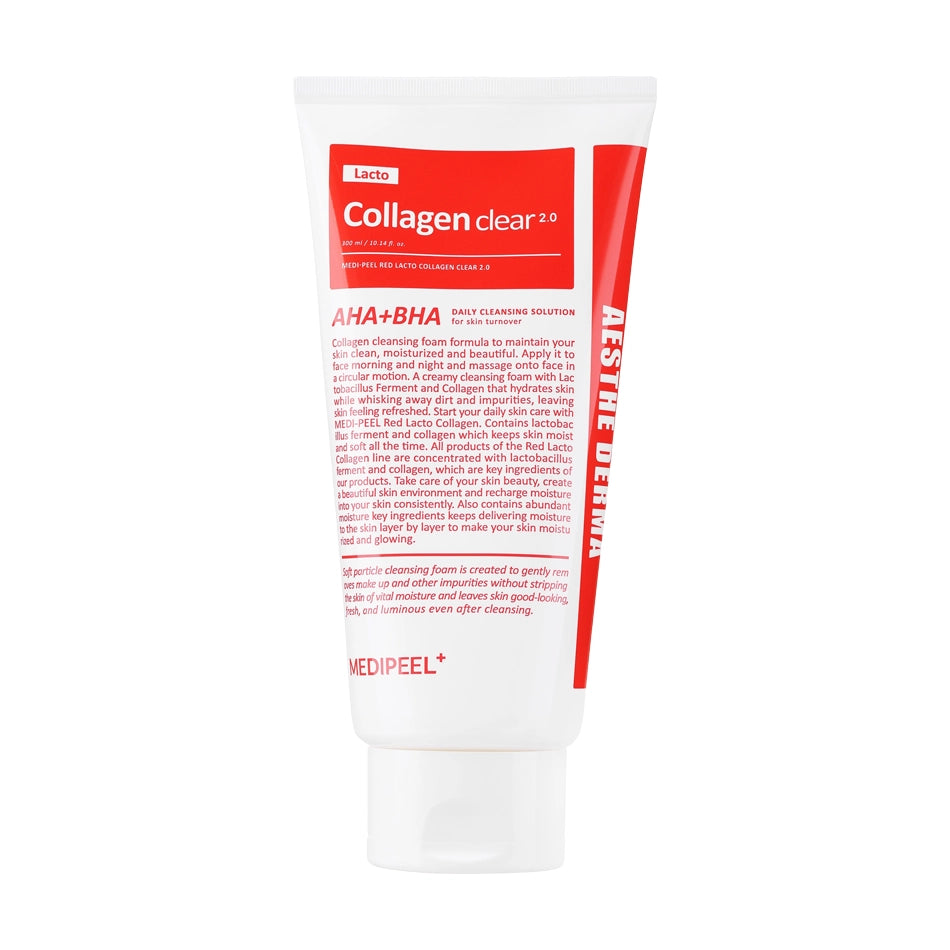 Attīrošās skābekļa putiņas Medi-Peel Red Lacto Collagen Clear Foam Cleanser 2.0 noskalo netīrumus no ādas virsmas, sašaurina poras un novērš to aizsprostošanos, balina tauku pavedienus, kā arī padara ādu tīrāku un gludāku.