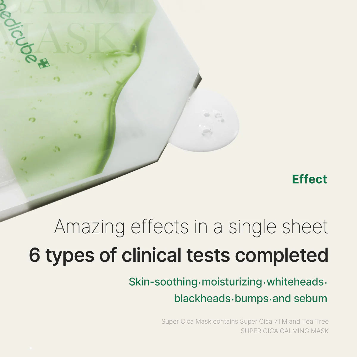 Medicube Super Cica Calming Mask — ultraplāna auduma maska, kas palīdz mazināt apsārtumu un niezi, atjaunot barjeru un piešķirt ādai mierīgu, vienmērīgu izskatu.