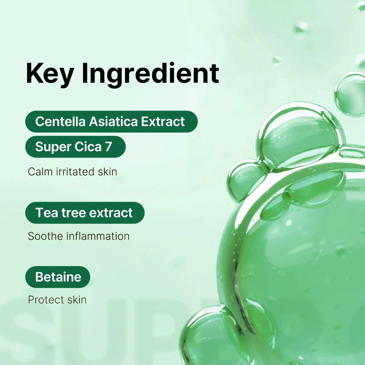 - Āzijas centella + Super Cica 7 — mazina iekaisumu, novērš apsārtumu un nostiprina ādas aizsargbarjeru.