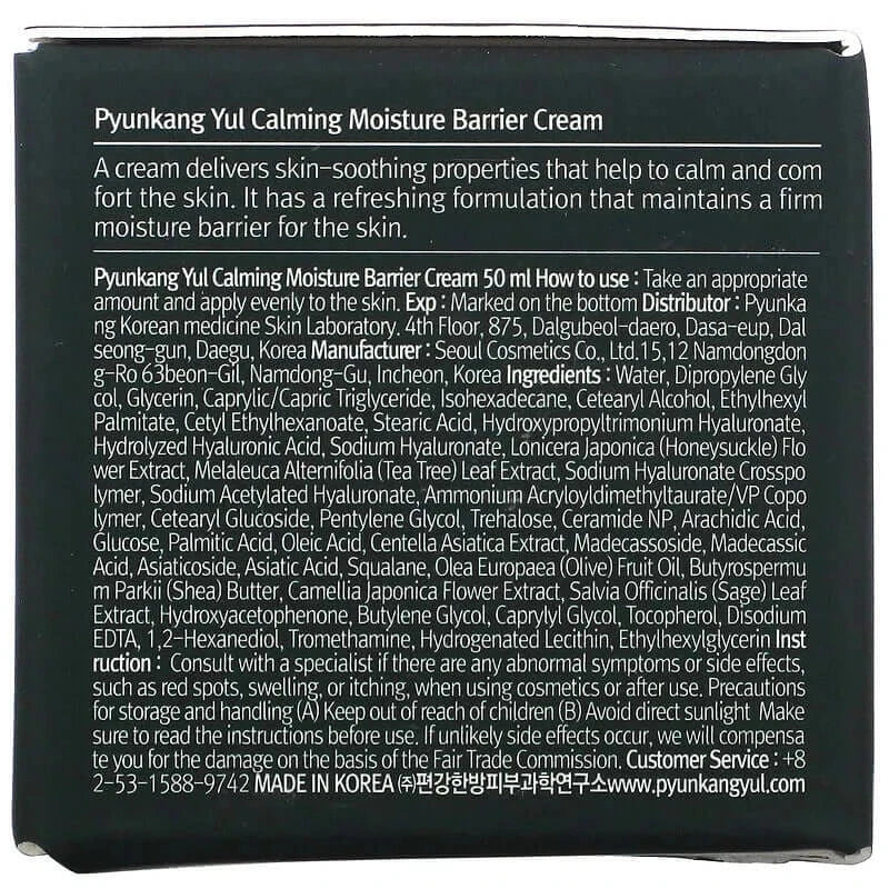 Nomierinošs aizsargkrēms Pyunkang Yul Calming Moisture Barrier Cream nomierina sakairinātu ādu, mazina apsārtumu, paātrina dzīšanas procesu. Mazina diskomfortu un niezi, nostiprina aizsargslāni, samazina ādas jutīgumu.