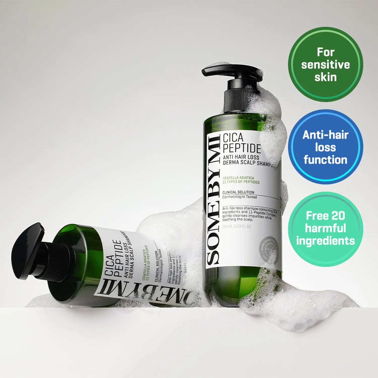Šampūns matu izkrišanas novēršanai ar Āzijas centellu Some By Mi Cica Peptide Anti Hair Loss Shampoo mitrina, nomierina galvas ādu, novērš sausumu un lobīšanos, kā arī mazina jutību un stiprina saknes. Nodrošina dziļu attīrīšanu, novērš netīrumus un lieko sebumu, uzlabo mikrocirkulāciju, kā arī veicina veselīgu un stipru matu augšanu. Novērš matu trauslumu un izkrišanu, kā arī padara matus blīvākus un stiprākus.