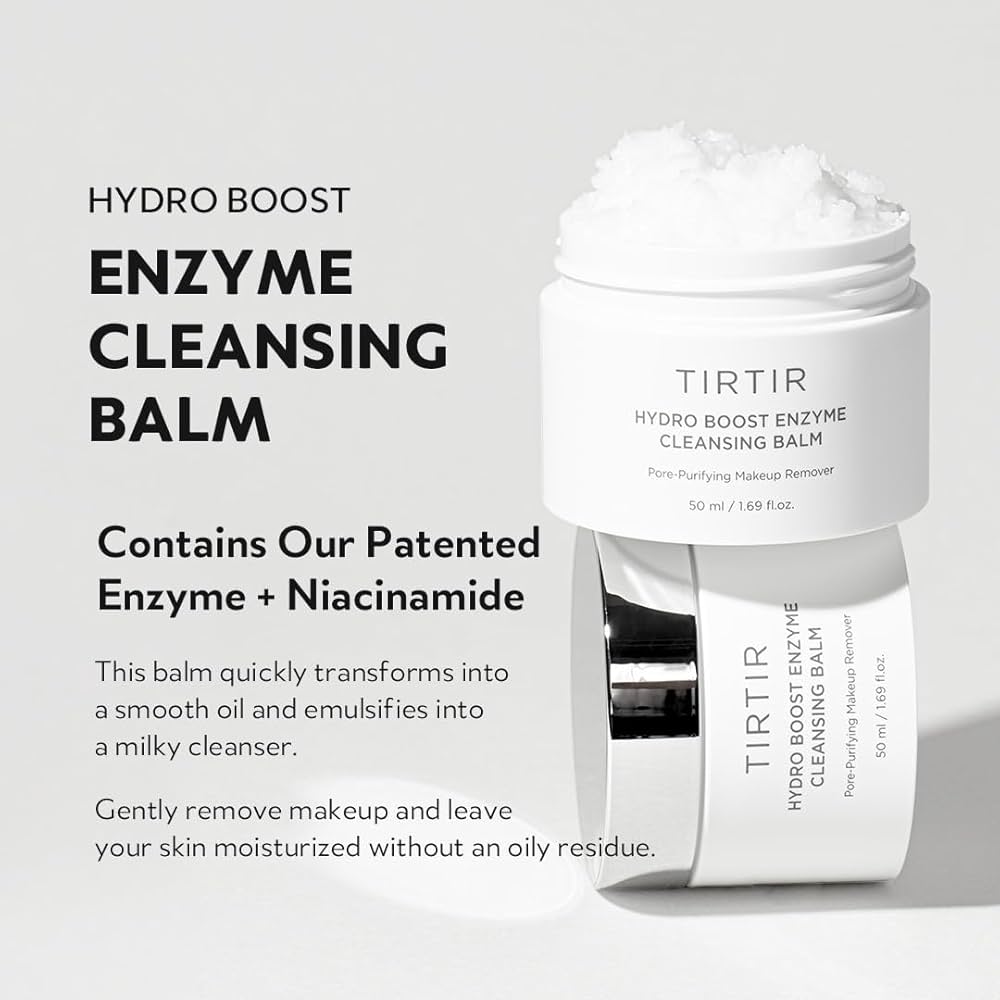 Attīrošais balzams ar fermentiem un probiotiķiem TIRTIR Hydro Boost Enzyme Cleansing Balm maigi noņem kosmētiku, netīrumus un lieko sebumu, vienlaicīgi dziļi attīrot poras un mitrinot ādu. Saskaroties ar ādu, tā maigā krēmveida tekstūra pārvēršas eļļā, bet pēc tam pieniņveida emulsijā, efektīvi izšķīdinot noturīgu kosmētiku un netīrumus.