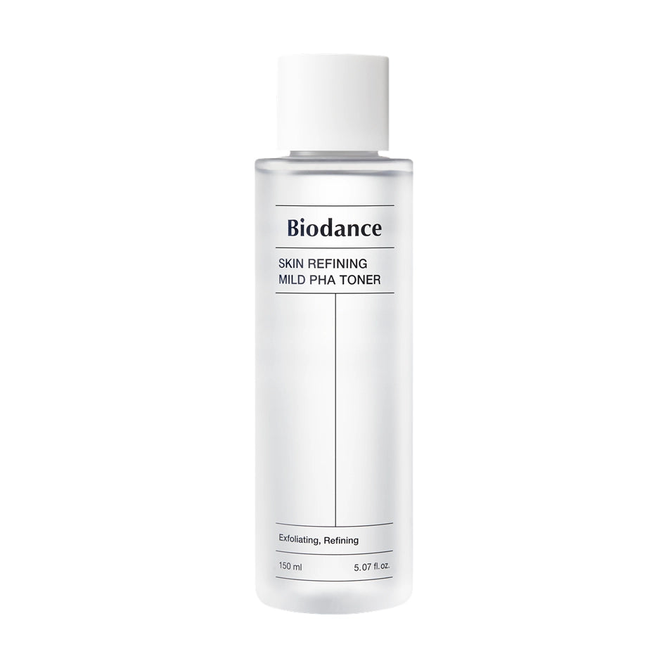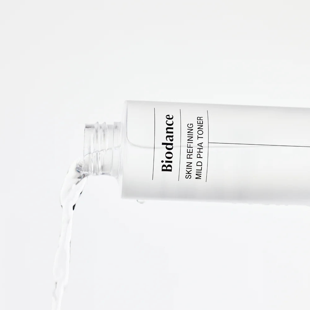 Biodance Skin Refining Mild PHA Toner - тонер для лица, который укрепляет защитный барьер. Подходит для всех типов кожи, в том числе для чувствительной. Содержит PHA-кислоту 8%, которая мягко отшелушивает ороговевшие клетки кожи, повышая уровень ее увлажненности и придавая ей сияние. Вместе с комплексом церамидов, биоферментом бактерий Lactobacillus и фитосфингозином он восстанавливает гидролипидную мантию эпидермиса, уменьшая реактивность кожи к внешним факторам и ускоряя процесс заживления.