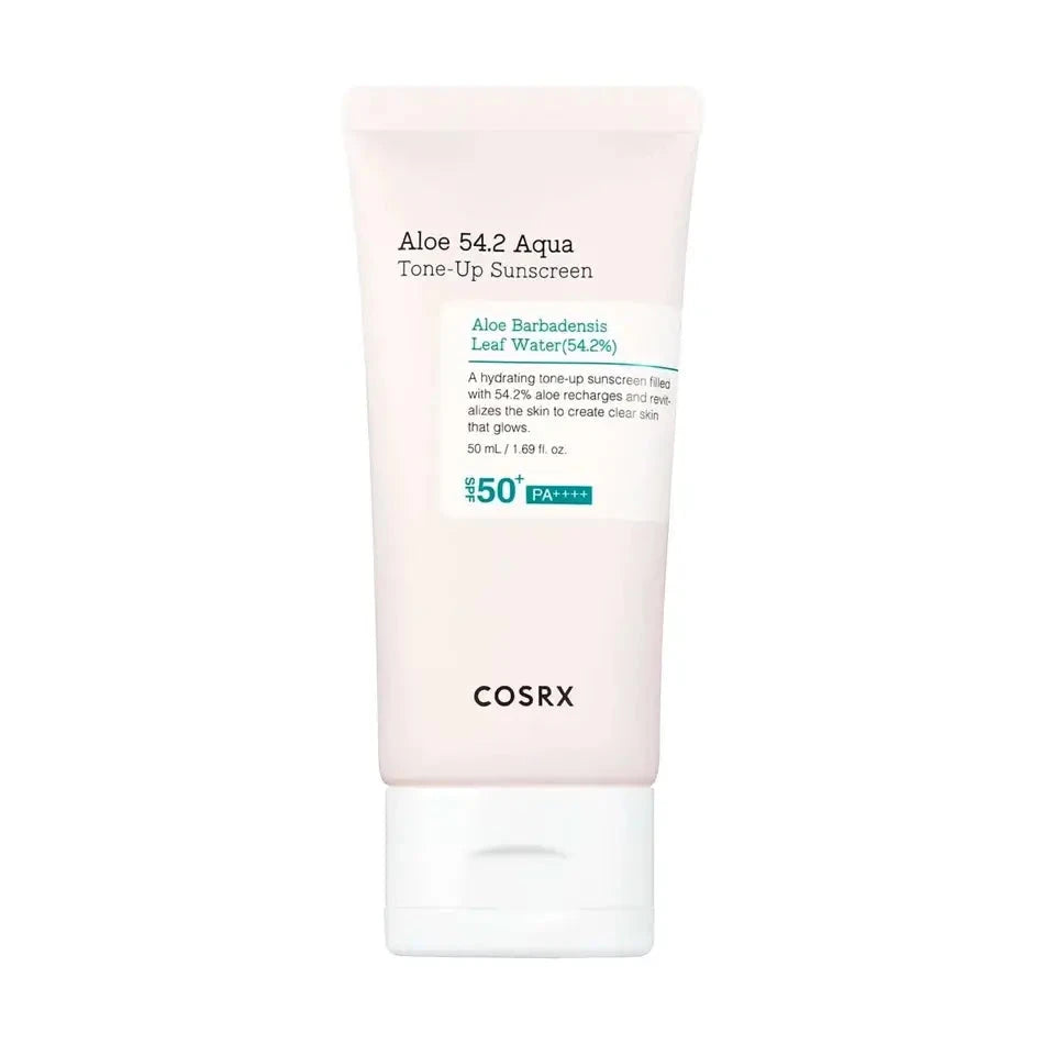 Используйте COSRX Aloe 54.2 Aqua Tone-Up Sunscreen для обеспечения надежной защиты, интенсивного увлажнения и здорового сияния вашей кожи.