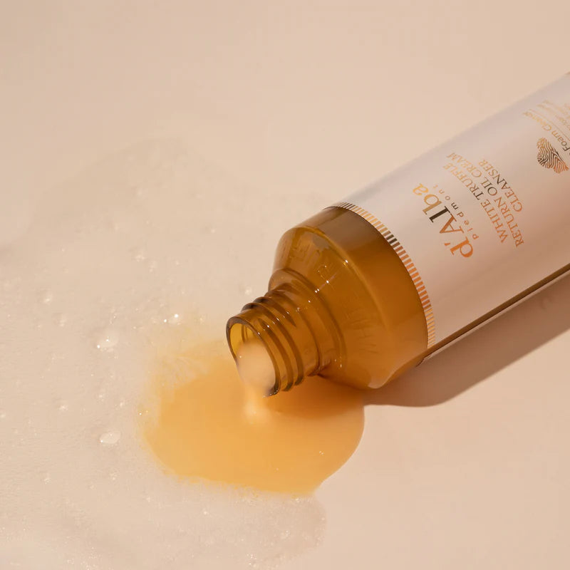 Гибридное очищающее средство d'Alba White Truffle Return Oil Cream Cleanser с масляной текстурой, которое эффективно удаляет загрязнения, макияж, включая водостойкий, и одновременно ухаживает за кожей. При контакте с водой средство трансформируется в нежную пену, очищая поры, укрепляя кожный барьер и повышая эластичность кожи.