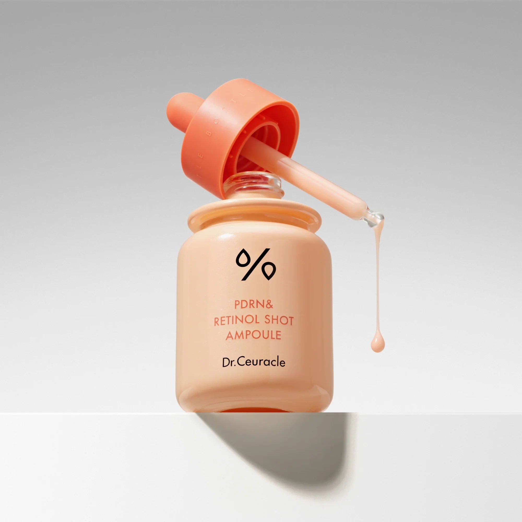 Dr. Ceuracle PDRN & Retinol Shot Ampoule — ампула с PDRN и ретинолом в микроспикулах для более гладкой текстуры, упругого вида и поддержания кожного барьера.