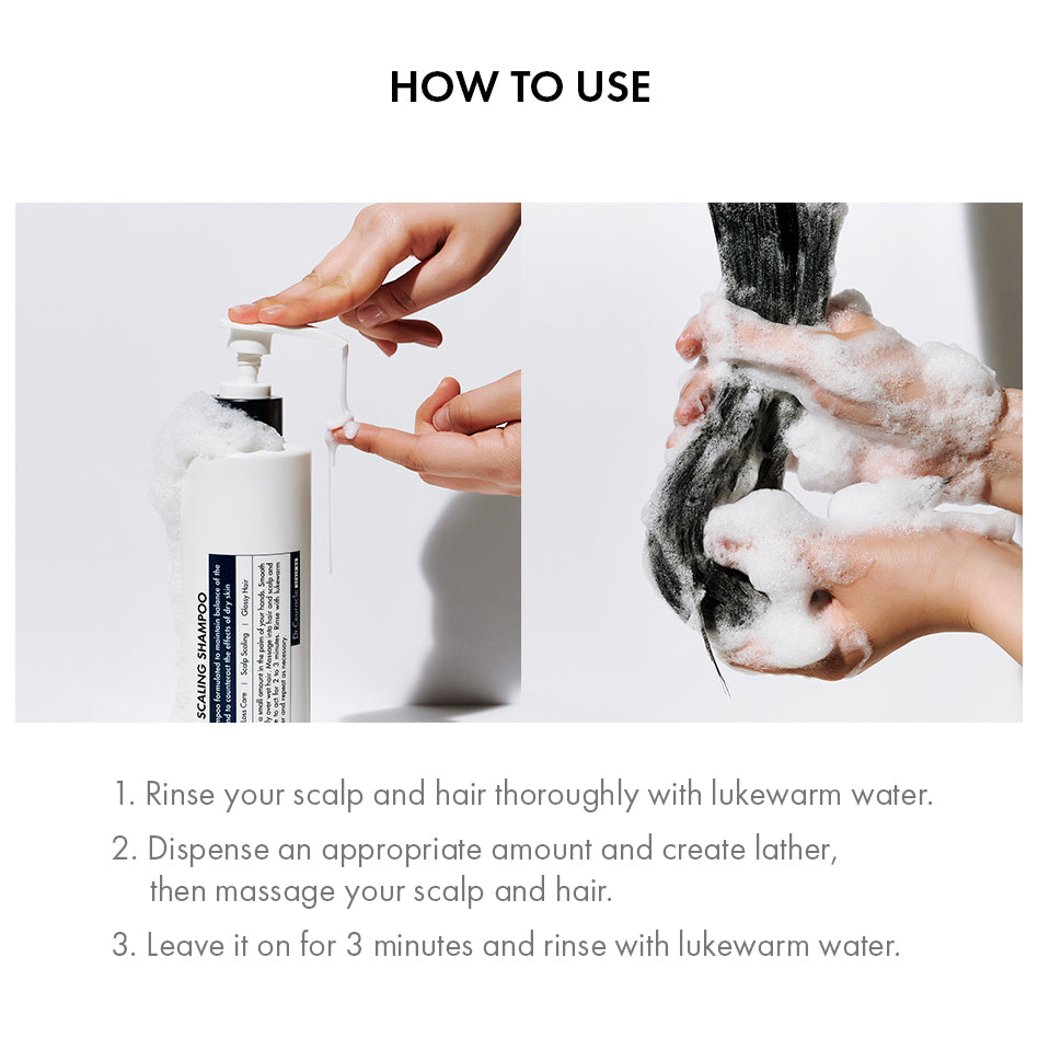 Нанесите необходимое количество шампуня на влажные волосы и кожу головы. Массажными движениями вспеньте средство и оставьте на 3 минуты для глубокого очищения пор. Тщательно смойте теплой водой.