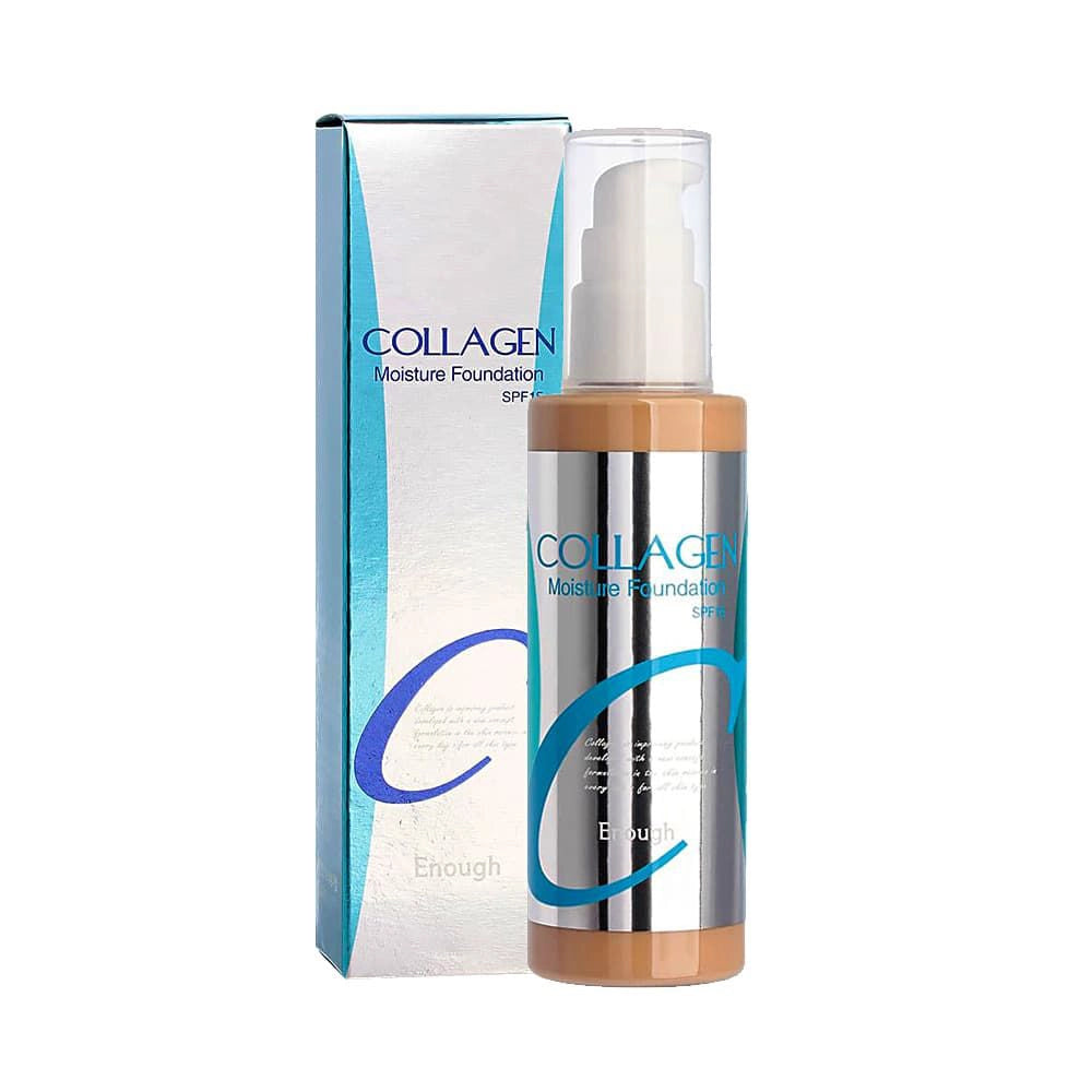 Enough Collagen Moisture Foundation SPF15 — лёгкий тональный крем с коллагеном, который выравнивает тон кожи, придаёт естественное сияние и поддерживает её упругость.
