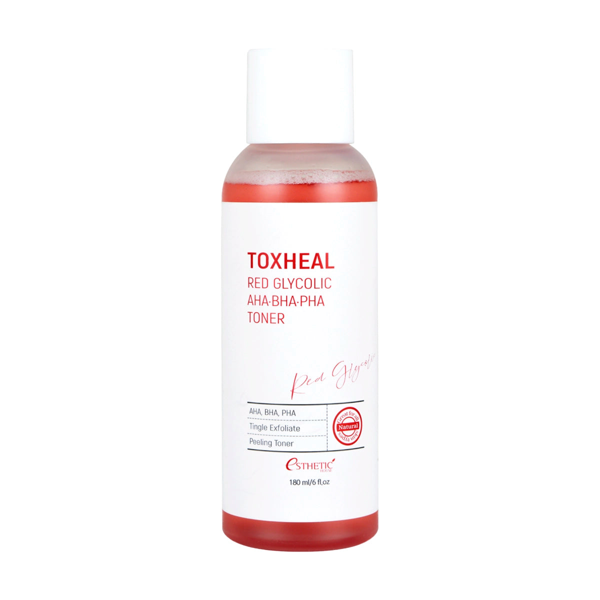 Esthetic House Toxheal Red Glycolic AHA·BHA·PHA Toner — это кислотный тоник, который эффективно очищает кожу, выравнивает её текстуру и улучшает цвет лица, сохраняя ощущение свежести и мягкости.