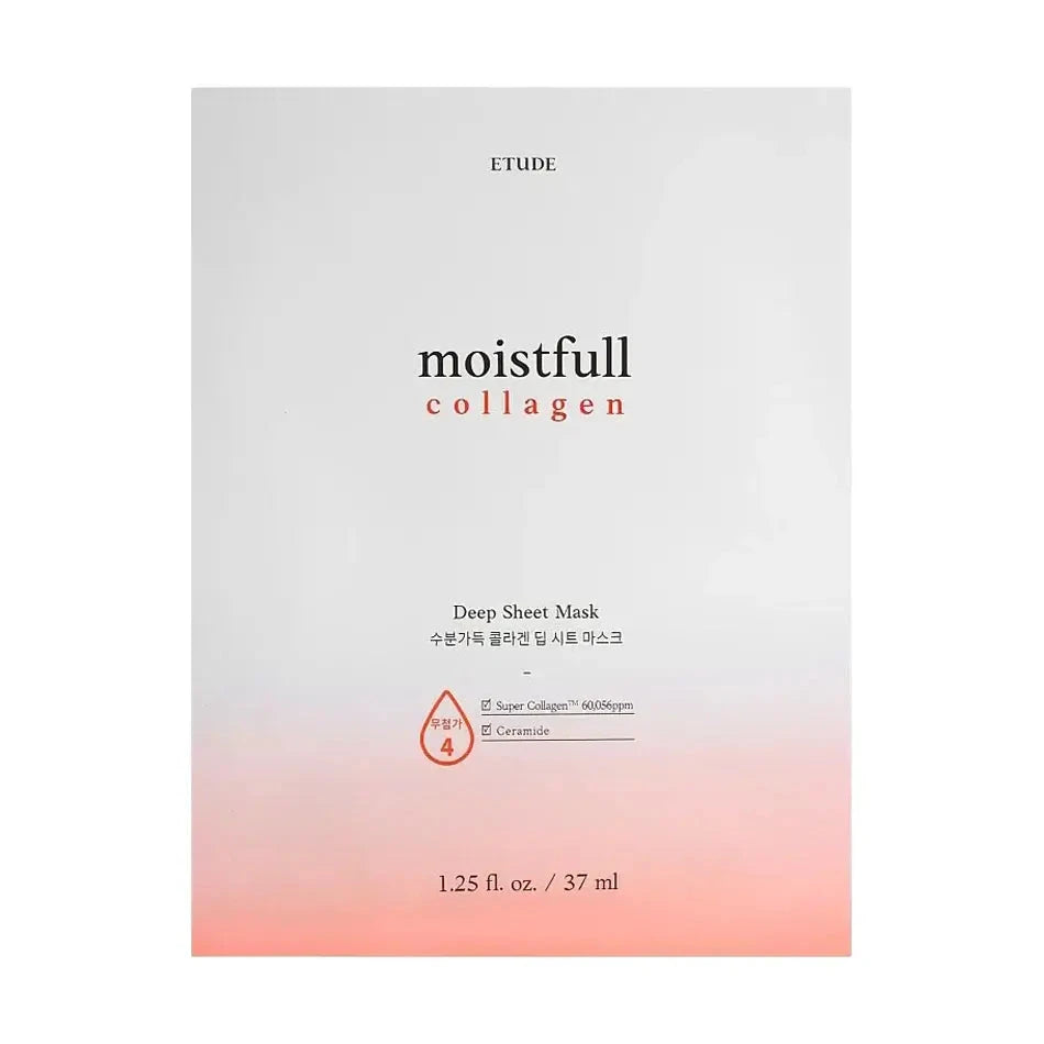 Тканевая увлажняющая маска с коллагеном и керамидом Etude House Moistfull Collagen Deep Sheet Mask глубоко увлажняет и помогает укрепить водный барьер для более здоровой кожи.