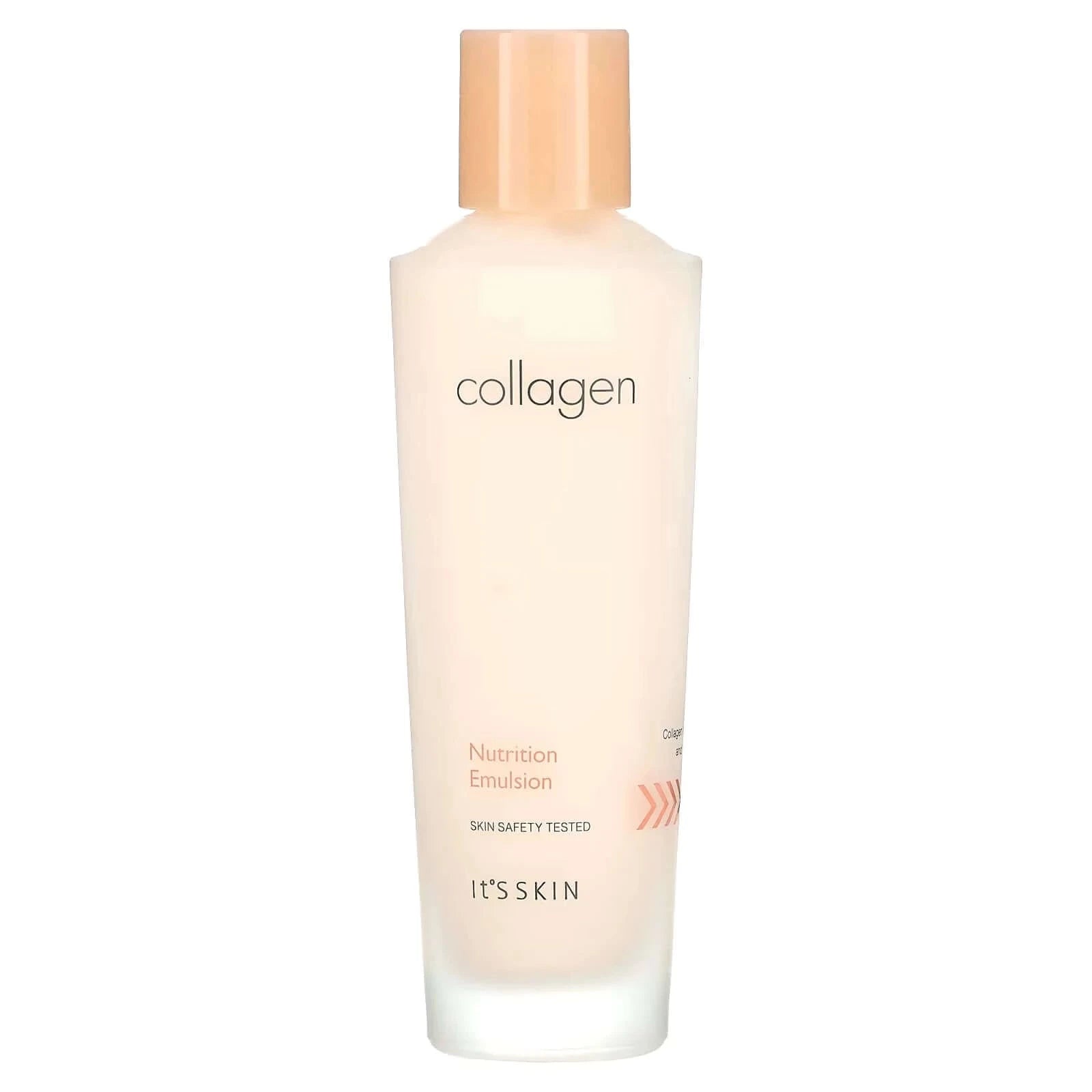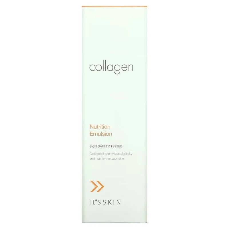 Питающая эмульсия It's Skin Collagen Nutrition Emulsion насыщает кожу влагой, уменьшает глубину морщин, препятствуя появлению новых. Гидролизованный коллаген в составе удерживает в коже молекулы воды и активизирует метаболизм, тем самым повышая эластичность и упругость кожи. Увеличивает защитные функции кожи и восприимчивость к негативным факторам экологии. Имеет легкую текстуру, удобно распределяется и быстро впитывается, без ощущения липкости.