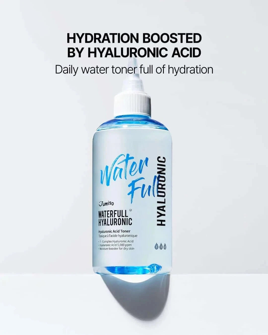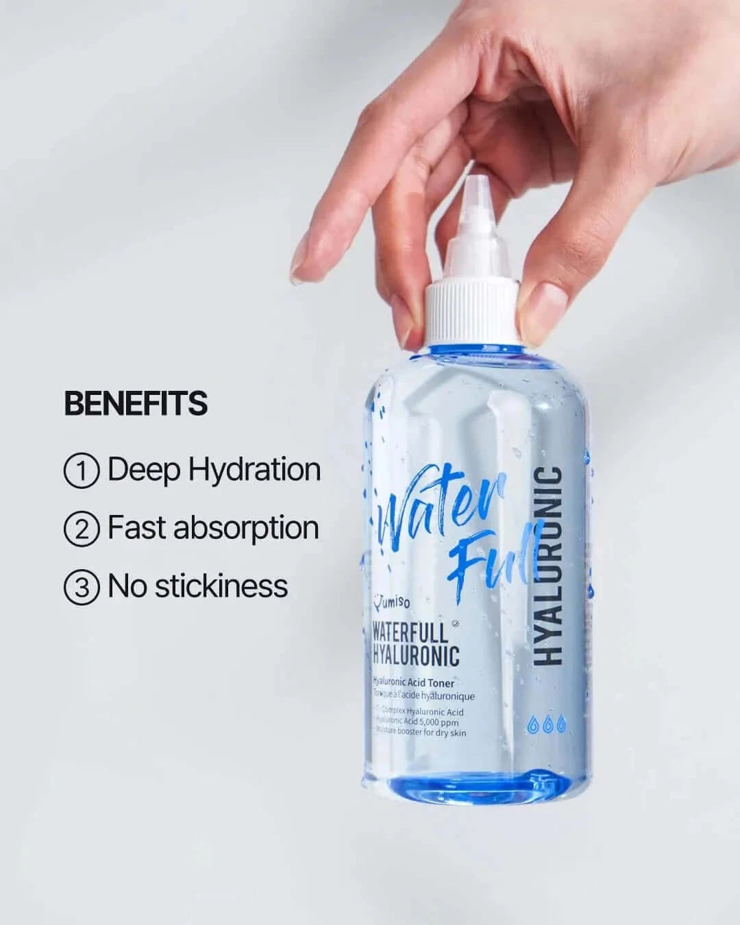 Jumiso Waterfull Hyaluronic Acid Serum - Увлажняющая и укрепляющая сыворотка на основе комплекста трёх видов Гиалуроновой кислоты, Пантенола и Керамидов, нормализует гидро-липидный баланс эпидермиса, поддерживая оптимальный уровень влаги в коже, укрепляет защитный функции и удерживает влагу, тем самым обеспечивая глубокое и пролонгированное увлажнение кожи в течении дня.