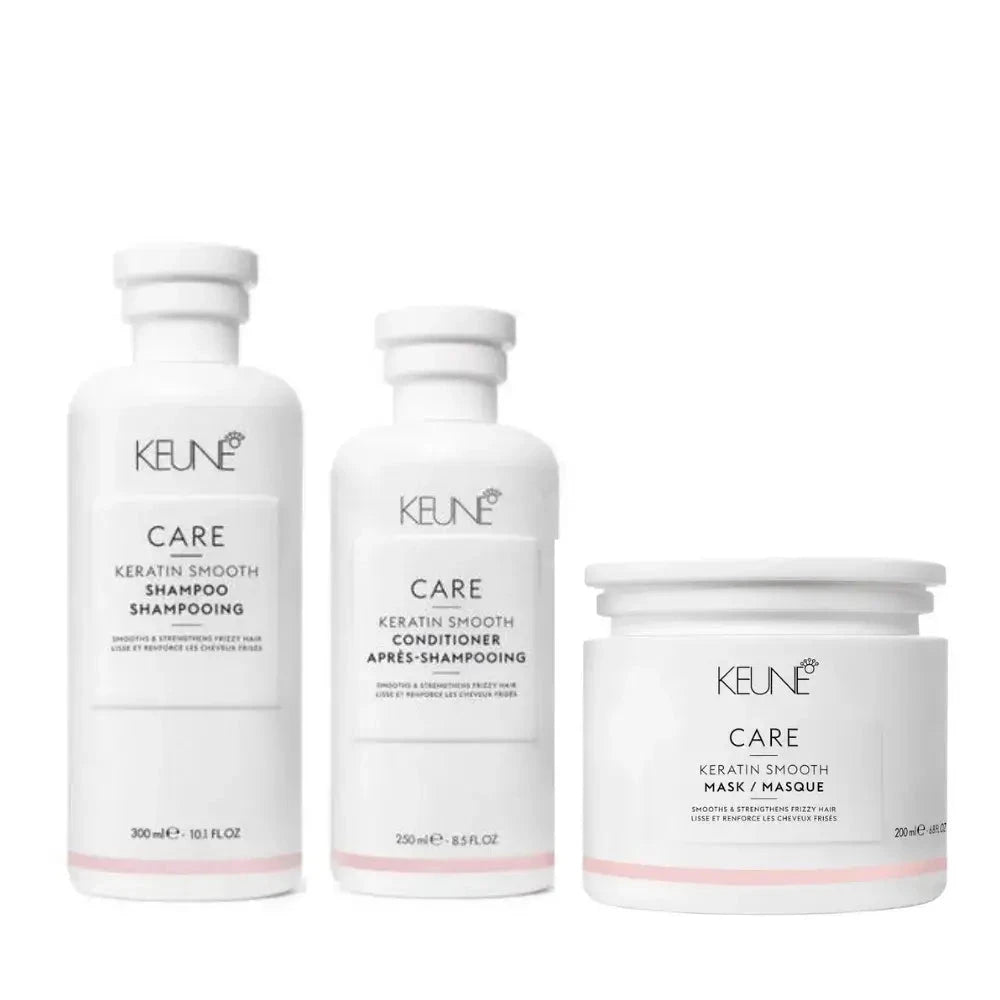 Кондиционер Keune CARE Keratin Smooth Conditioner специально разработан для сухих и непослушных волос. Обогащенный провитамином В5 и кератином, этот продукт интенсивно питает и увлажняет волосы, при этом не утяжеляя их. Формула кондиционера включает кератиновый комплекс, который уменьшает ломкость волос и восстанавливает их структуру, заполняя повреждения. Масло ши и провитамин В5 восстанавливают влажностный баланс, делая волосы гладкими, эластичными и блестящими. Продукт облегчает расчесывание, делая тусклые и поврежденные локоны здоровыми и шелковистыми.
