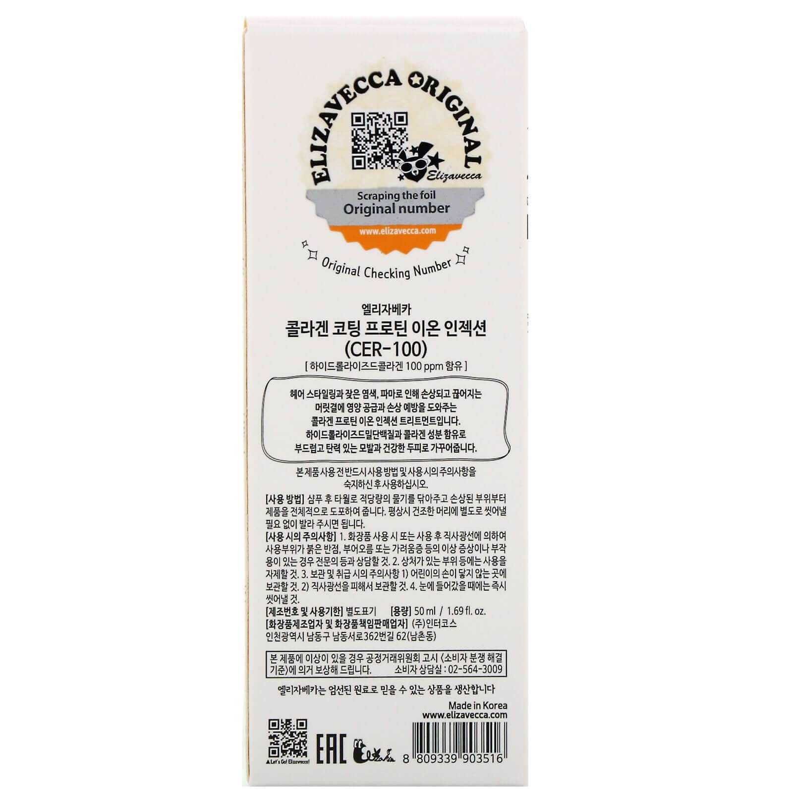 Эссенция для волос с коллагеном Elizavecca CER-100 Collagen Coating Protein Ion Injection, 50мл