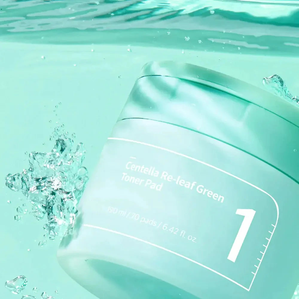 Тонер-пады No.1 Centella Re-Leaf Green Toner Pad подходят для использования в качестве тонера после очищения лица или как успокаивающая маска, оставляя пады на лице примерно на пять минут.