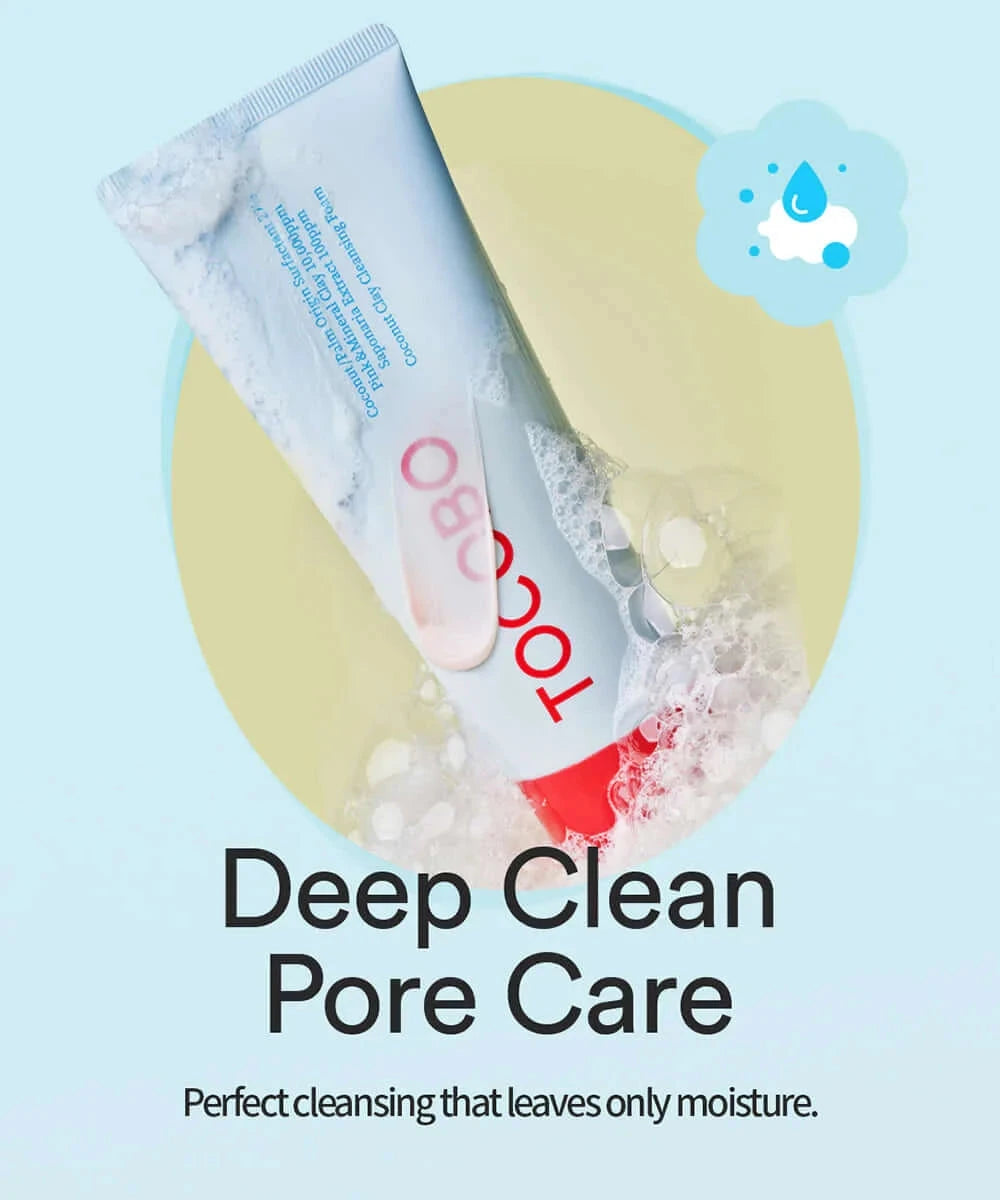 Глубоко очищающая пенка TOCOBO Coconut Clay Cleansing Foam на основе нескольких видов глины (каламин и бентонит) и экстракта кокоса помогает тщательно очистить кожу от загрязнений, остатков макияжа, контролировать повышенное выделение себума, способствует очищению пор.