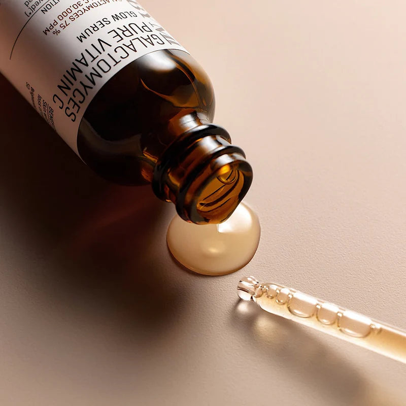 Средство имеет высококонцентрированный состав для эффективного осветления кожи — фермент галактомисиса (75%), витамин С (30,000 ppm) и комплекс витаминов.
