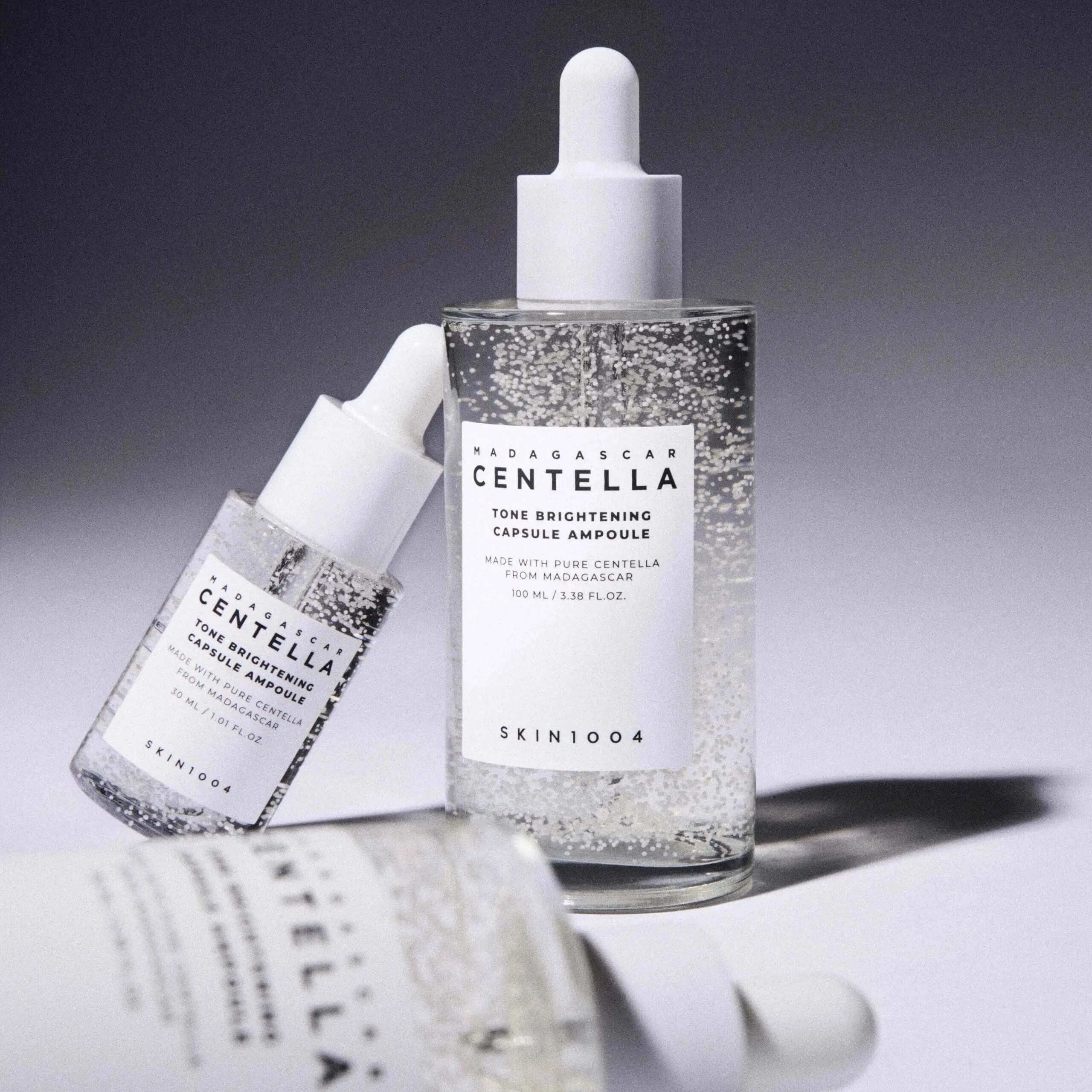 SKIN1004 Madagascar Centella Tone Brightening Capsule Ampoule – осветляющий концентрат для кожи, обогащенный активными ингредиентами, которые преобразуют, увлажняют и смягчают, обеспечивая яркость без стимуляции или ущерба для кожи. Эта уникальная формула с легкой текстурой и включенными капсулами мгновенно впитывается, активизируя компоненты для эффективного действия.