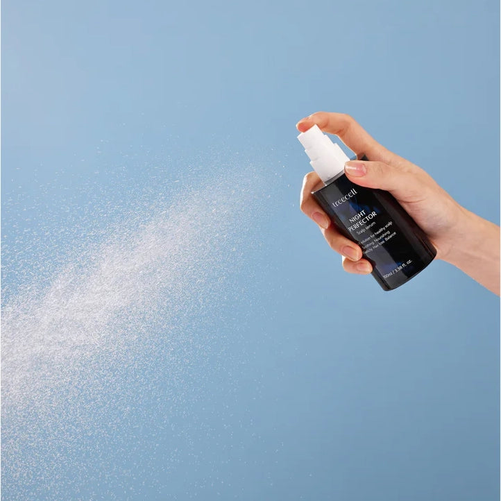 - Утром и вечером встряхните флакон и распылите Treecell Night Perfector непосредственно на кожу головы.