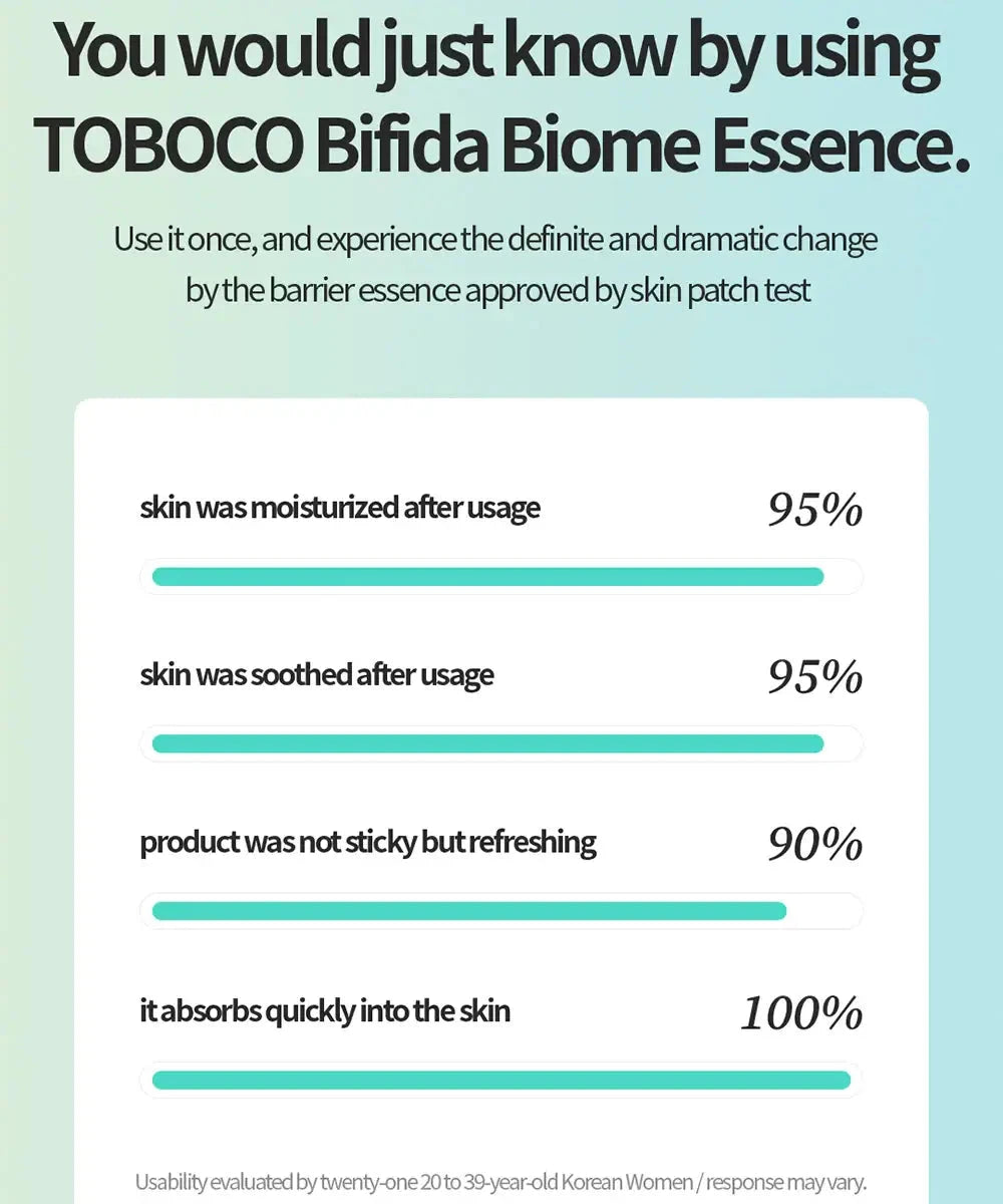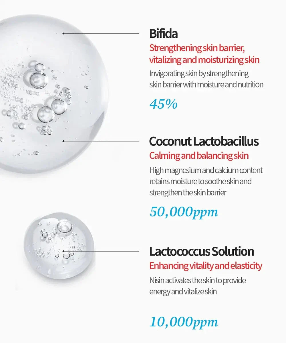 Tocobo Bifida Biome Essence — обогащенная тремя пробиотическими молочнокислыми бактериями, эссенция успокаивает и оживляет кожу, укрепляя защитный барьер. Она обеспечивает оптимальное состояние кожи, улучшает ее эластичность и уменьшает мелкие морщины за счет содержания ниацинамида и аденозина. Эссенция борется с покраснением и воспалением, придавая коже красивое здоровое сияние.