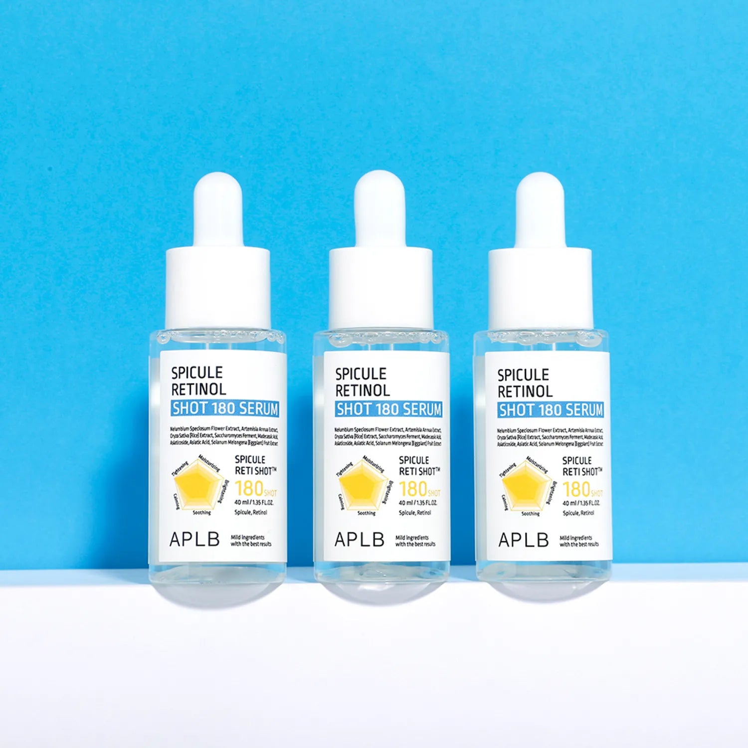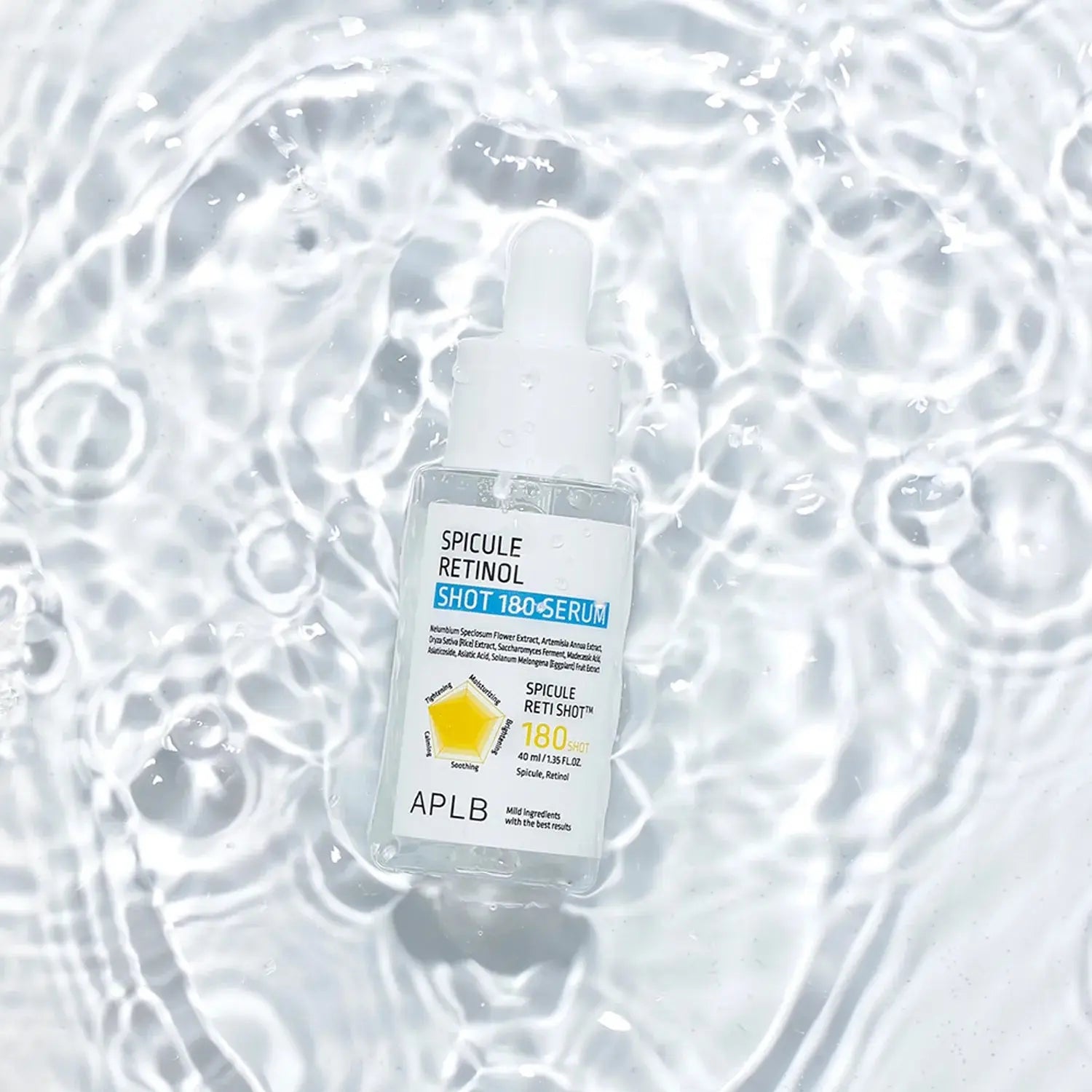 APLB Spicule Retinol Shot 180 Serum — vieglas tekstūras serums ar retinolu un spikulām, kas palīdz atjaunot ādu, samazināt grumbiņas un padarīt to tvirtāku un mirdzošu.