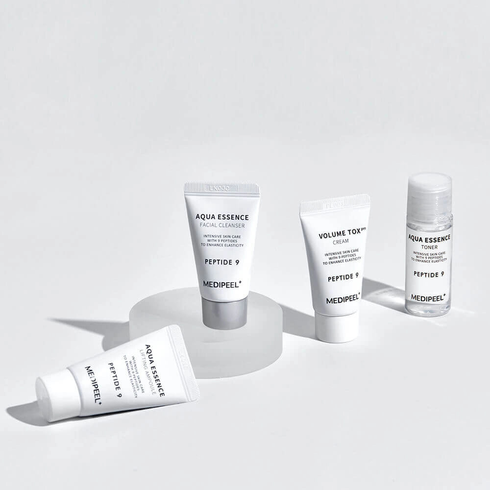 Medi-Peel Peptide 9 Aqua Essence Trial Kit — комплект миниатюр с 9 пептидами и гиалуроновой кислотой для увлажнения и упругости кожи.